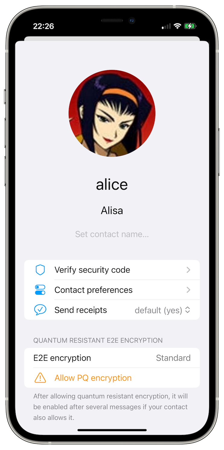 Now all new contacts you add to the app will use quantum resistant double ratchet algorithm.